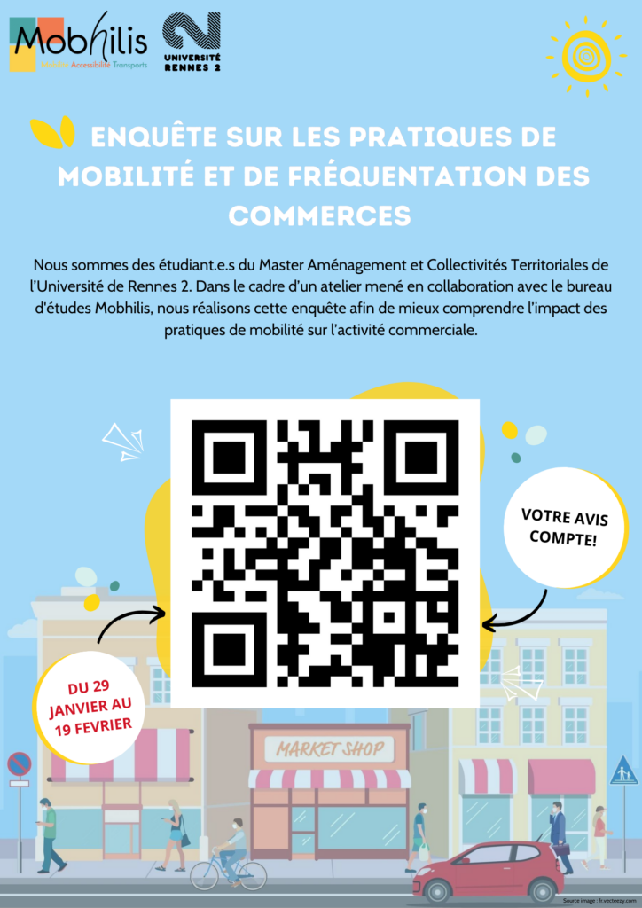 Nous sommes un groupe de 5 étudiants en Master Urbanisme de l’université Rennes II, et travaillons en collaboration avec le bureau d’études Mobhilis.